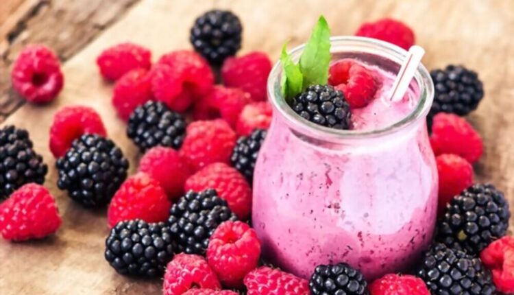 شیر ، ماست یونانی و تمام توت ها را درون مخلوط کن می ریزیم و دستگاه را روشن می کنیم تا به خوبی مواد میکس شوند.