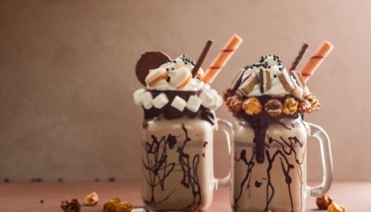 قطعات یخ ، شیر ، شکلات چیپسی و مقداری سس شکلات را درون مخلوط کن ( میکسر ) می ریزیم و به خوبی میکس می کنیم.